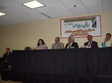 420 | Biyad-e-Hanif Akghar Aalmi Mushaira organized by Halqa-e-Fikr-o-fun and Pak American Cultural Society in New Jersey. Himayat Ali Shair, Saleem Kauser, Inam ul Haq Javed, Zakia Ghazal and Manzar Bhopali participated. Program Hosted by Vakeel Ansari.